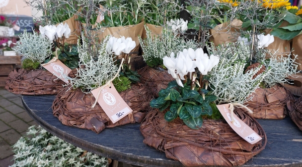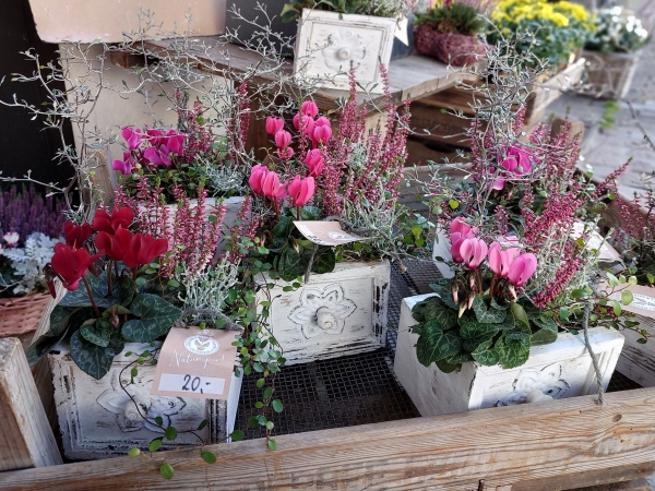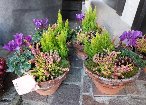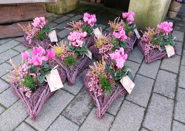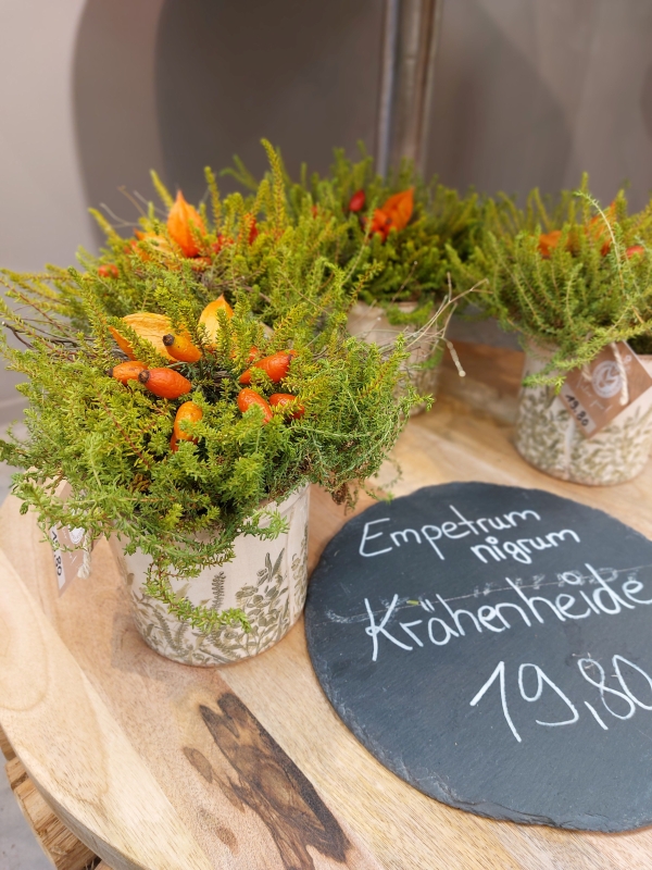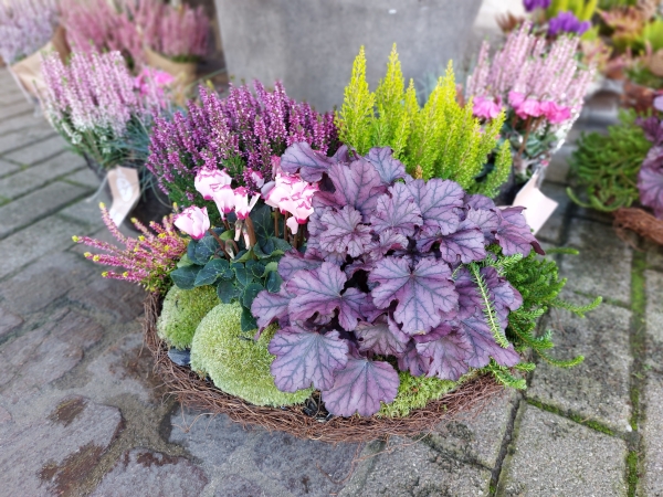 Herbstlich bepflanzte Körbchen und Schalen -in verschiedenen Ausführungen- finden Sie bei uns auch.
